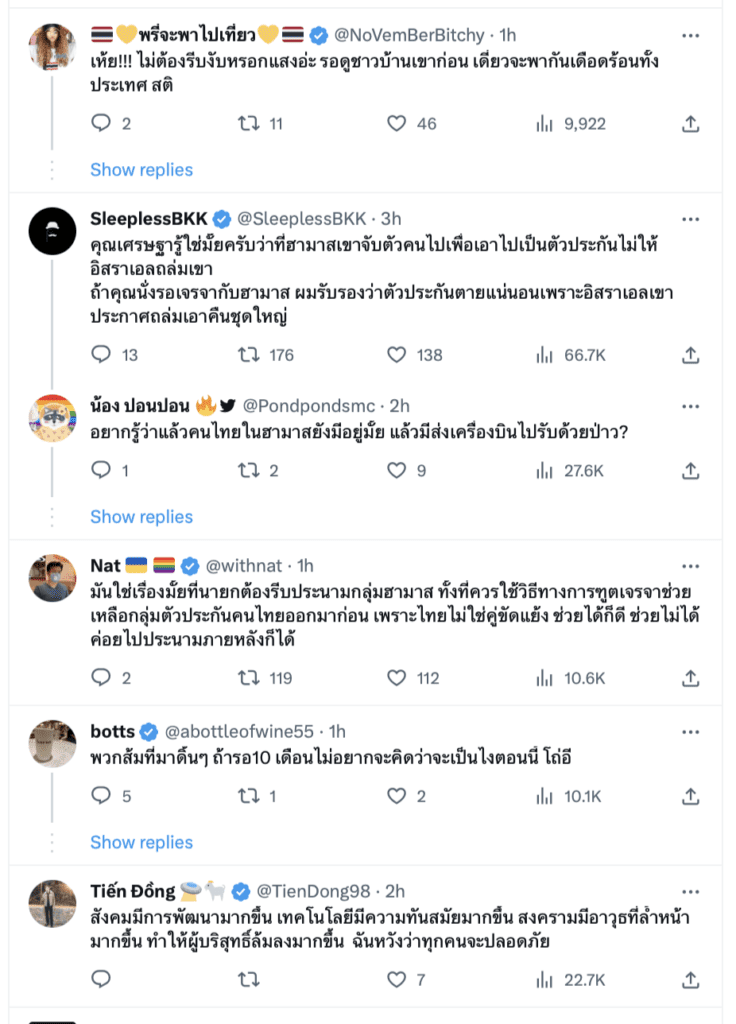 “אני רוצה שכל אזרחי תאילנד יחזרו הביתה בשלום”, כתב סרטה בציוץ בX (לשעבר טוויטר).