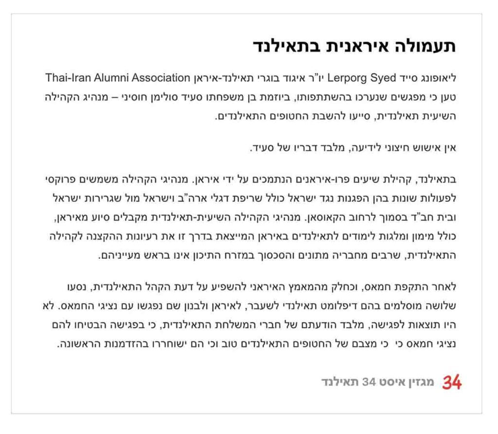 אלא שבדיקה באינטרנט, מגלה כי סייד הוא שליח איראן. יו”ר בוגרי מסלול תאילנד-איראן, מהמיעוט השיעי-מוסלמי בתאילנד. נתמך איראן. סייד אינו חלק מהמשלחת של תאילנד למו”מ לשחרור החטופים התאילנדים.