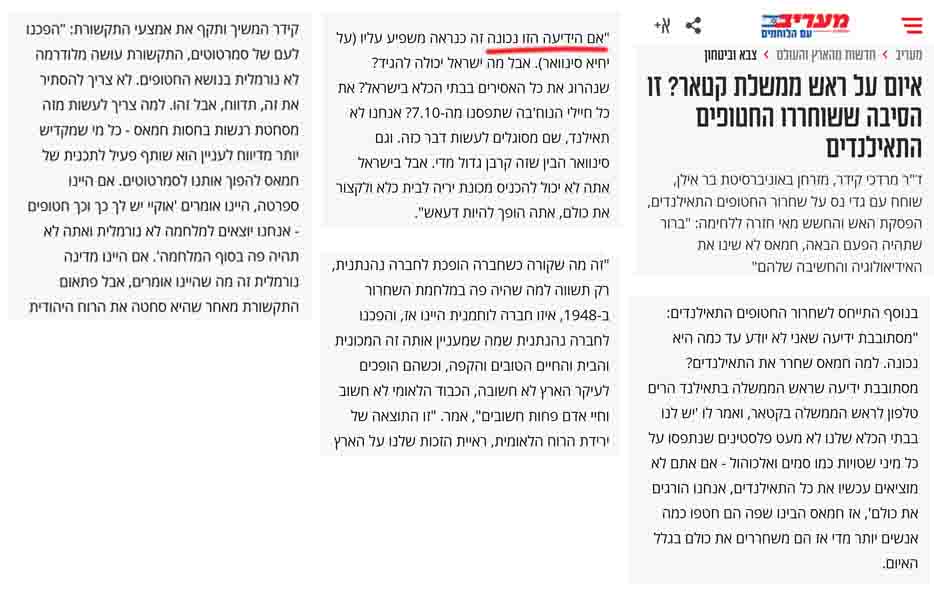 “טוב, ללכלך על ישראל זה חלק מהעסקה. חשבתם שהחמאס ישחרר את התאילנדים בחינם?”