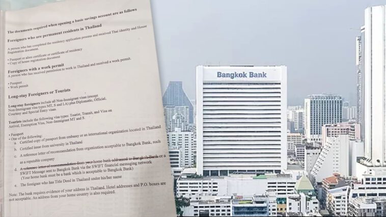 המסמך פנימי של “Bangkok Bank” עבור עובדי הבנק, מפרט את הדרישות מזרים המעוניינים לפתוח חשבון בבנק: