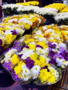 שוק הפרחים הפירות והירקות פתוח 24 שעות ביממה, על גדת נהר הדז’או פריה החוצה את בנגקוק.