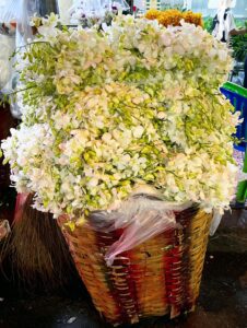 הרוכלים, הקולעים את השרשראות ומתפרנסים ממכירתם, קונים בדרך כלל פרחי יסמין ומריגולד.