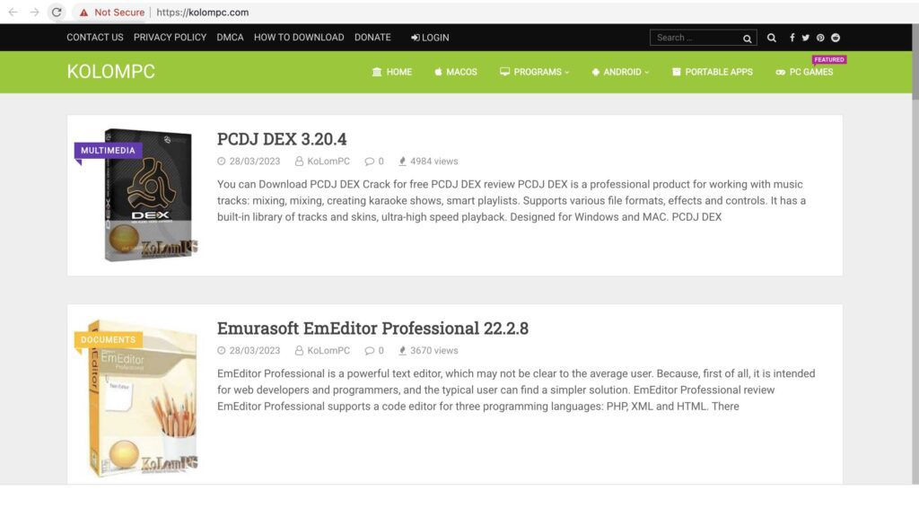 אתר האינטרנט kolompc.com מאפשר הורדת תוכנות.