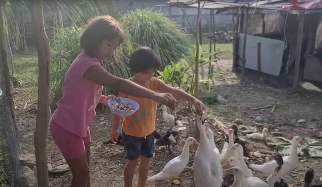 קרינה מגרמניה, ופּוֹן מתאילנד, חיים יחד עם ילדיהם, בכפר דייגים, באי לנטה בדרום תאילנד.