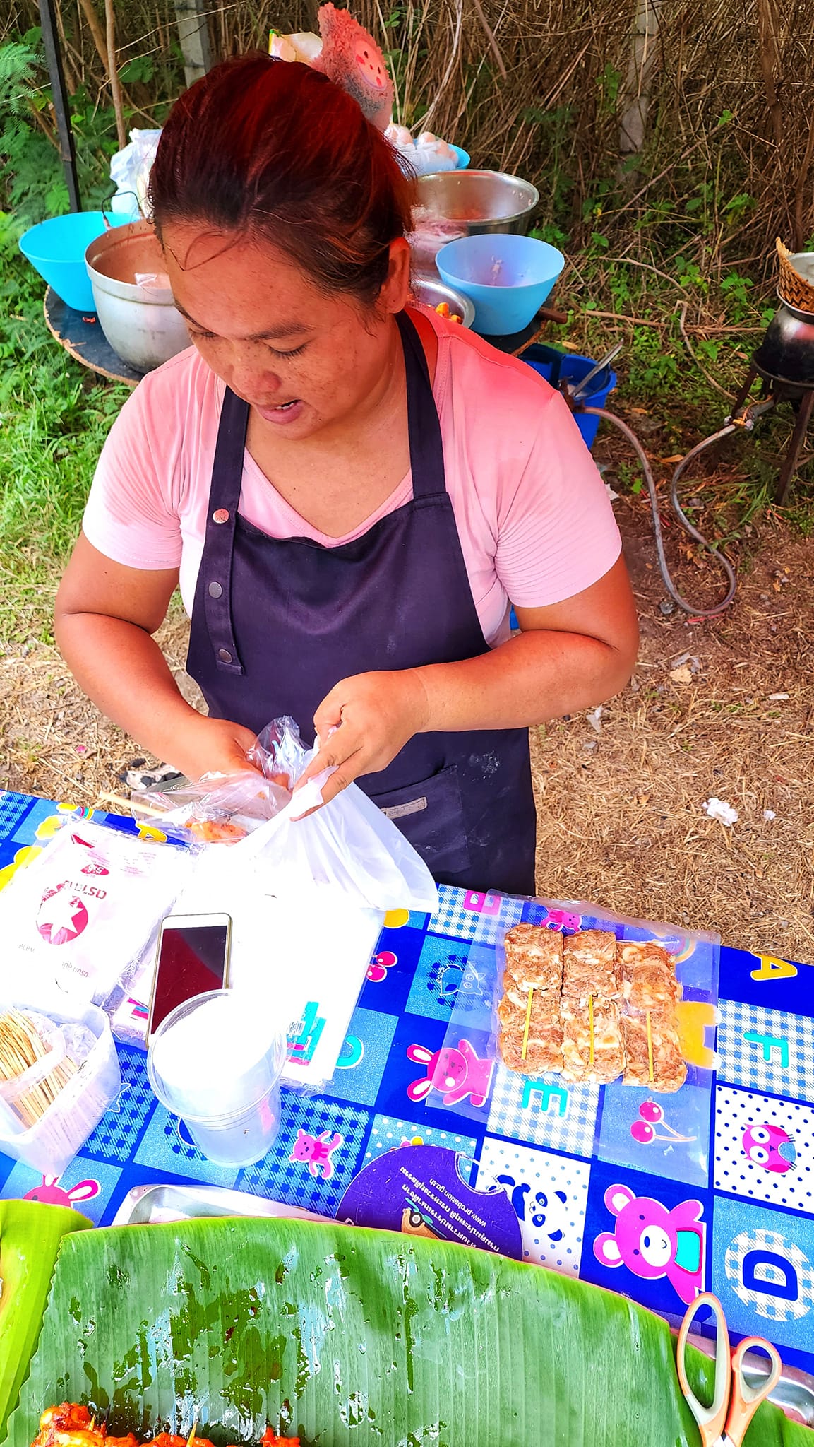 ארוחת בוקר מסורתית, שחוטפים בתאילנד מהרוכלים בצידי הדרך לעבודה