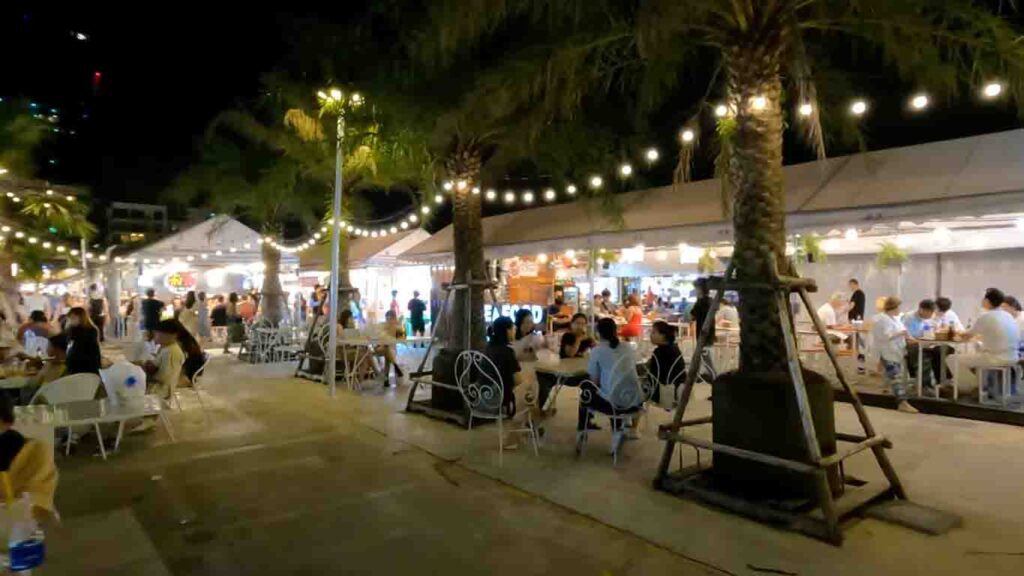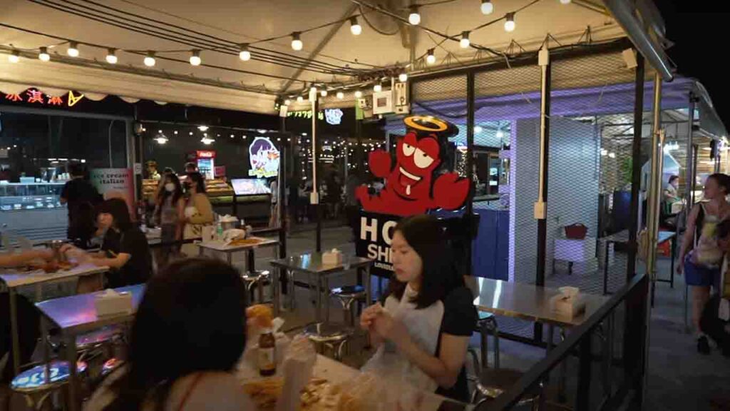 The Street Ratchada Night Market ตลาดนัด เดอะ สตรีท รัชดา אזור עמוס מסעדות ודוכנים.