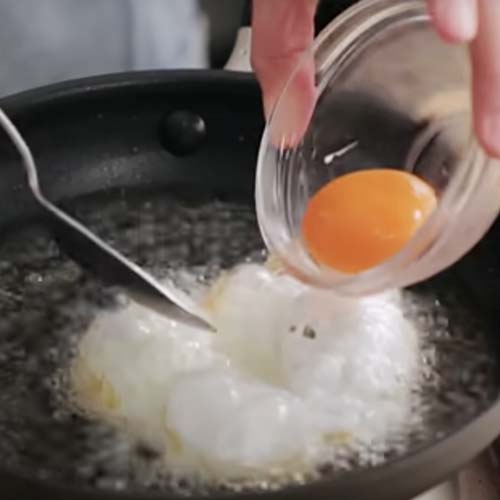 לא הופכים ביצה מטוגנת בשמן עמוק. מביאים מהצד עם כף הבישול קצת שמן רותח ושמים מלמעלה, לטגן אותה גם שם.