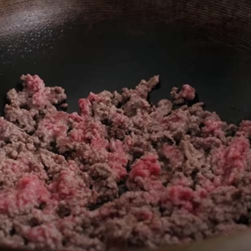 עד שמתאדה כל הנוזל שיוצא ממנו במהלך הטיגון. מתי מוכן? זמן מה אחרי תחילת הטיגון הבשר יתחיל להפריש נוזלים, אחר כך יתחיל להתייבש ולקבל צבע מבושל ואז קצת שרוף בקצוות. צליל הטיגון יחלש ויהפוך נמוך ואחיד יותר. בשלב הזה – להוריד את תדירות הערבוב עם כף העץ, כדי לתת לבשר זמן על המשטח הלוהט כדי להיצלות בפינות.