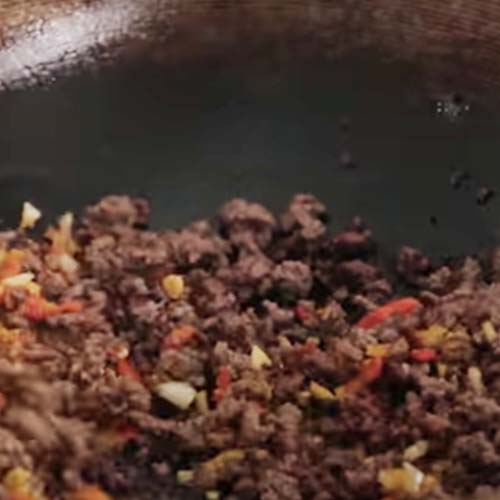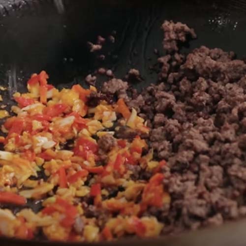 בבשר בקר, לטגן קודם את הירקות עד ריכוך קל. אחר כך להוציא את הירקות מהווק. להכניס את בשר הבקר ולטגן אותו עד שצבעו הופך אפרפר. אח”כ להוסיף את הירקות עם קצת שמן, ולהמשיך לטגן עוד 2-3 דקות יחד – על הווק/מחבת הרותח.