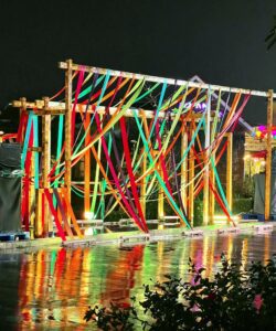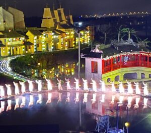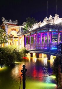 בניינים במגוון השפעות אדריכליות בסגנון עיר סחר במזרח אסיה במאה ה 15 עד ה19 כולל גשר יפני מהמאה ה16-17