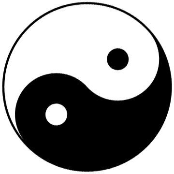 סמל הין והיאנג, מציג את המתח בין “יחסי” ו”מוחלט” (לדוגמא: תורת ישראל נצחית, וגם משתנה לאורך השנים בפרשנות. עם ישראל קולט מנהגים מעמים אחרים – כמו הלבוש האירופאי החרדי – וגם מתנגד לקליטה של מנהגים זרים). תפיסת הין-יאנג מאפשרת ראיה רחבה של המציאות, אבל מערערת פעמים רבות את תחושת הוודאות והביטחון שיש להגדרות מוחלטות של “טוב או רע”.